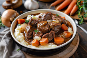 Ce bœuf bourguignon au vin de Chinon est une recette qui réchauffe le cœur et ravit les papilles. Simple à réaliser et pleine de goût, elle met en valeur le vin de notre région tout en respectant la tradition culinaire française. Vous allez adorer le résultat, alors n’hésitez pas à la tester pour vos prochains repas familiaux ou entre amis !