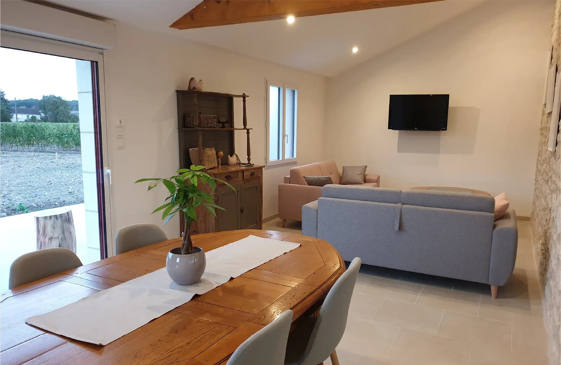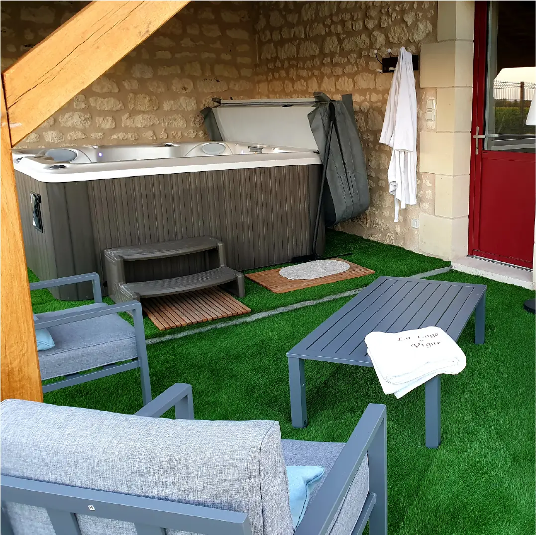 Profitez de la terrasse couverte et du spa mis à votre disposition, et relaxez-vous dans le salon de jardin avec vue sur les vignes.